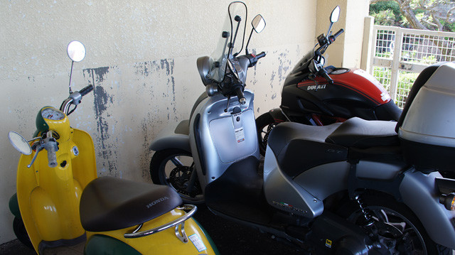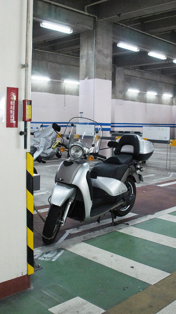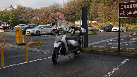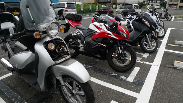 すぐ近くにバイク用駐車場があるんだから利用しない手は無い。
