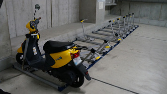 24時間入出庫可能なバイク用駐車場がある。