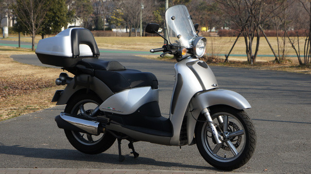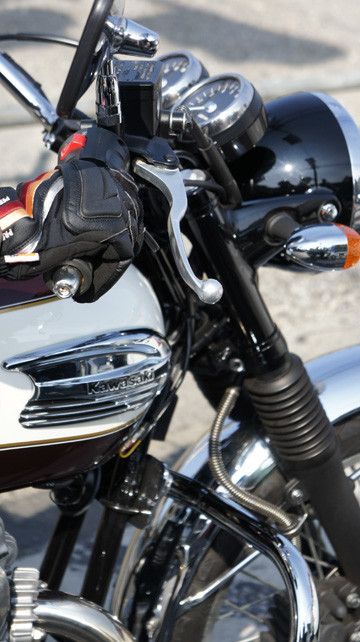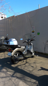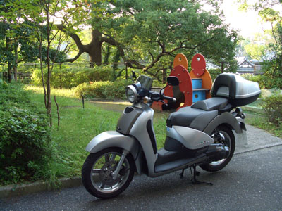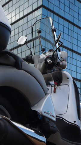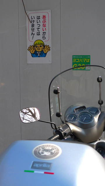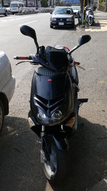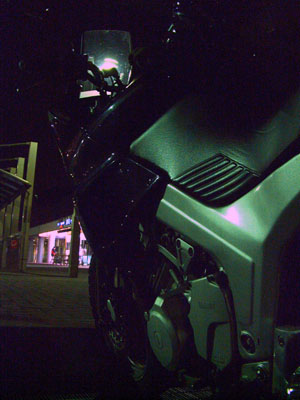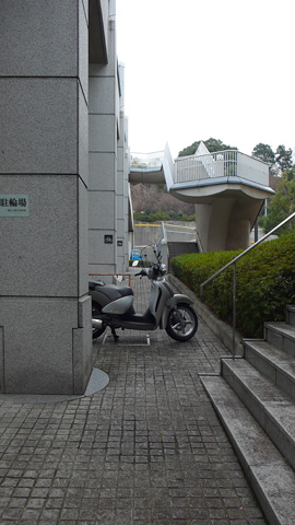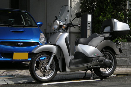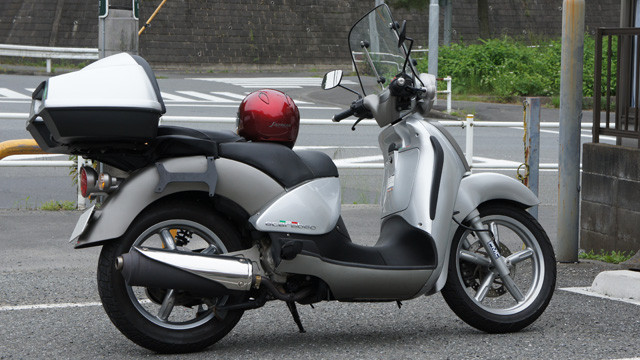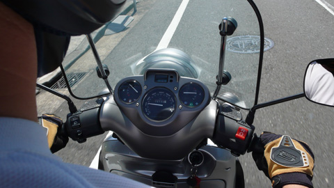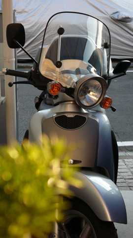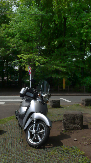 で、満タン後、傾斜地にサイドスタンドで駐めていたら、